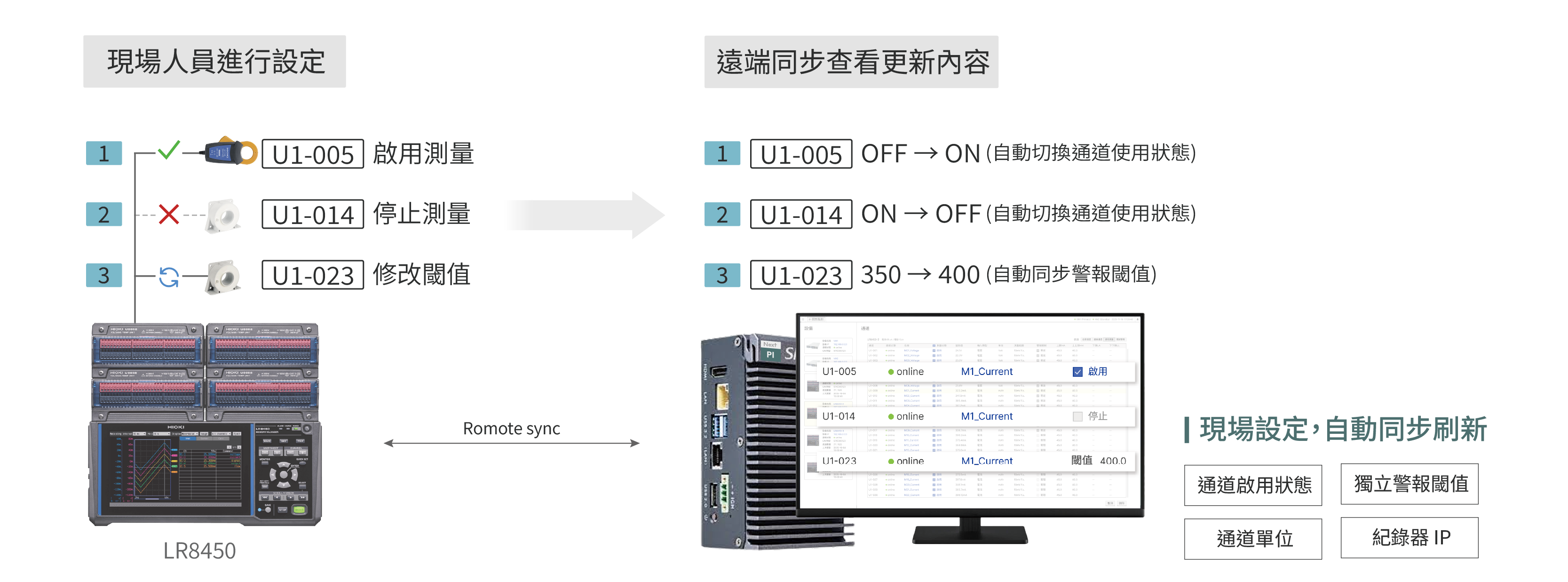 - 當現場人員調整或設定紀錄器參數時,系統可同步更新,無延遲呈現。