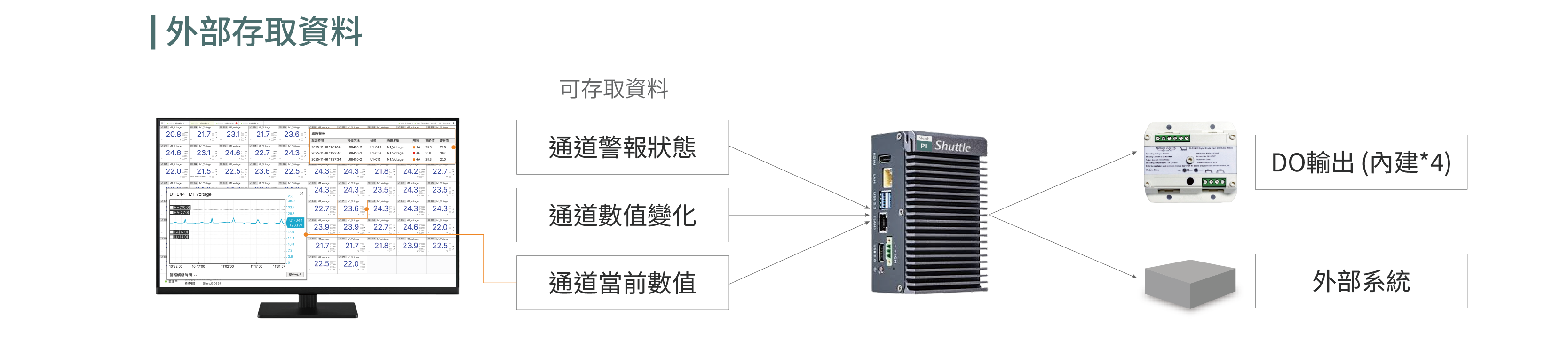 - 客戶可依監測結果連動DO 輸出 (內建4個) 或外部系統。