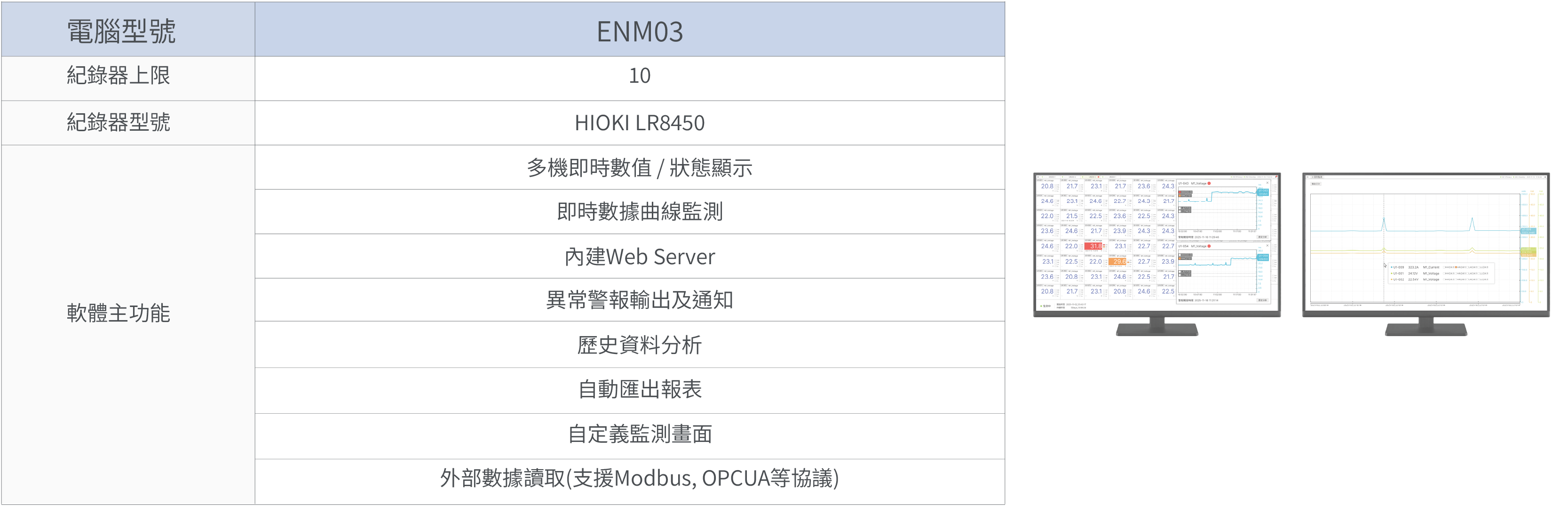 - 系統可即時讀取紀錄器的測數值 / 設定值,並持續刷新最新資料。