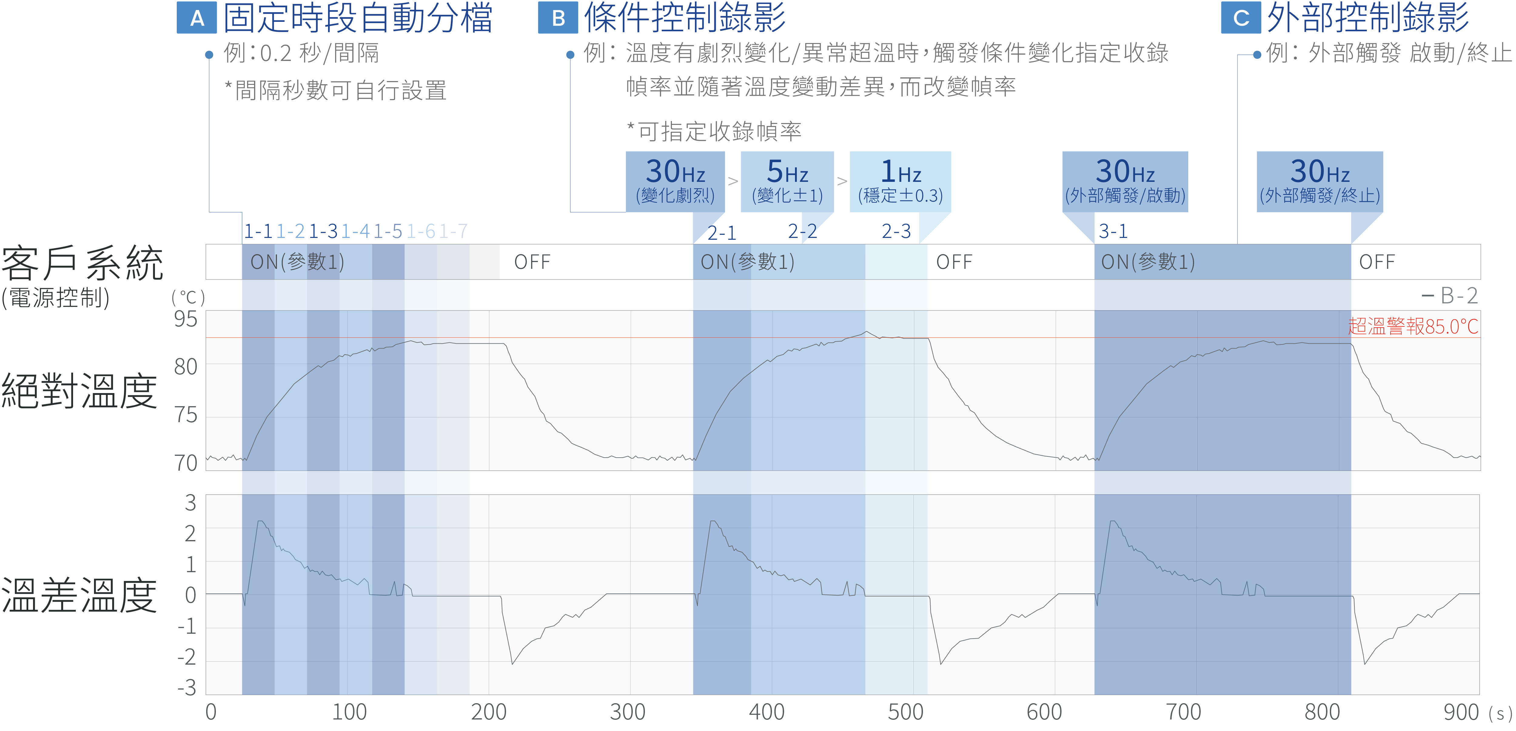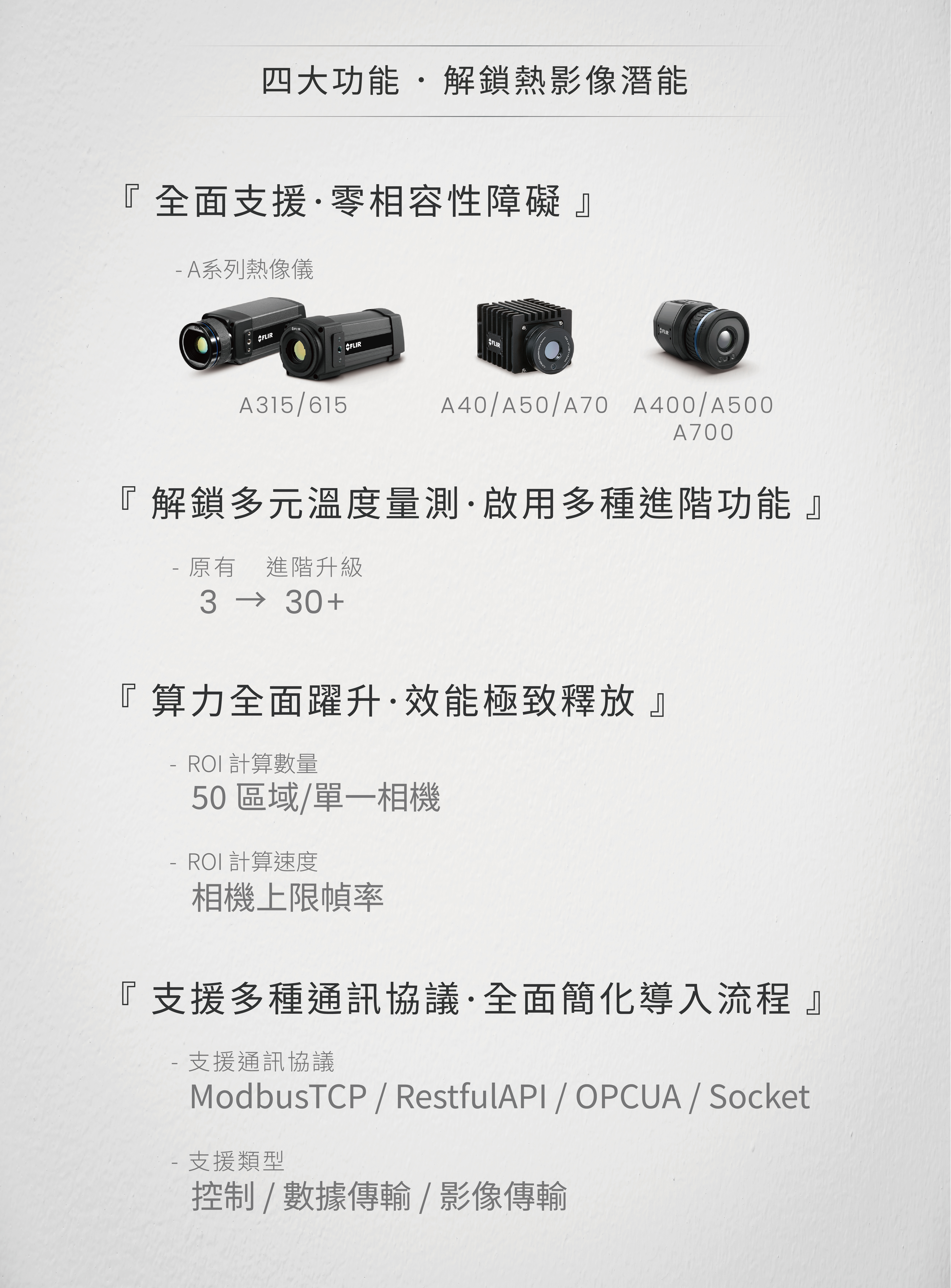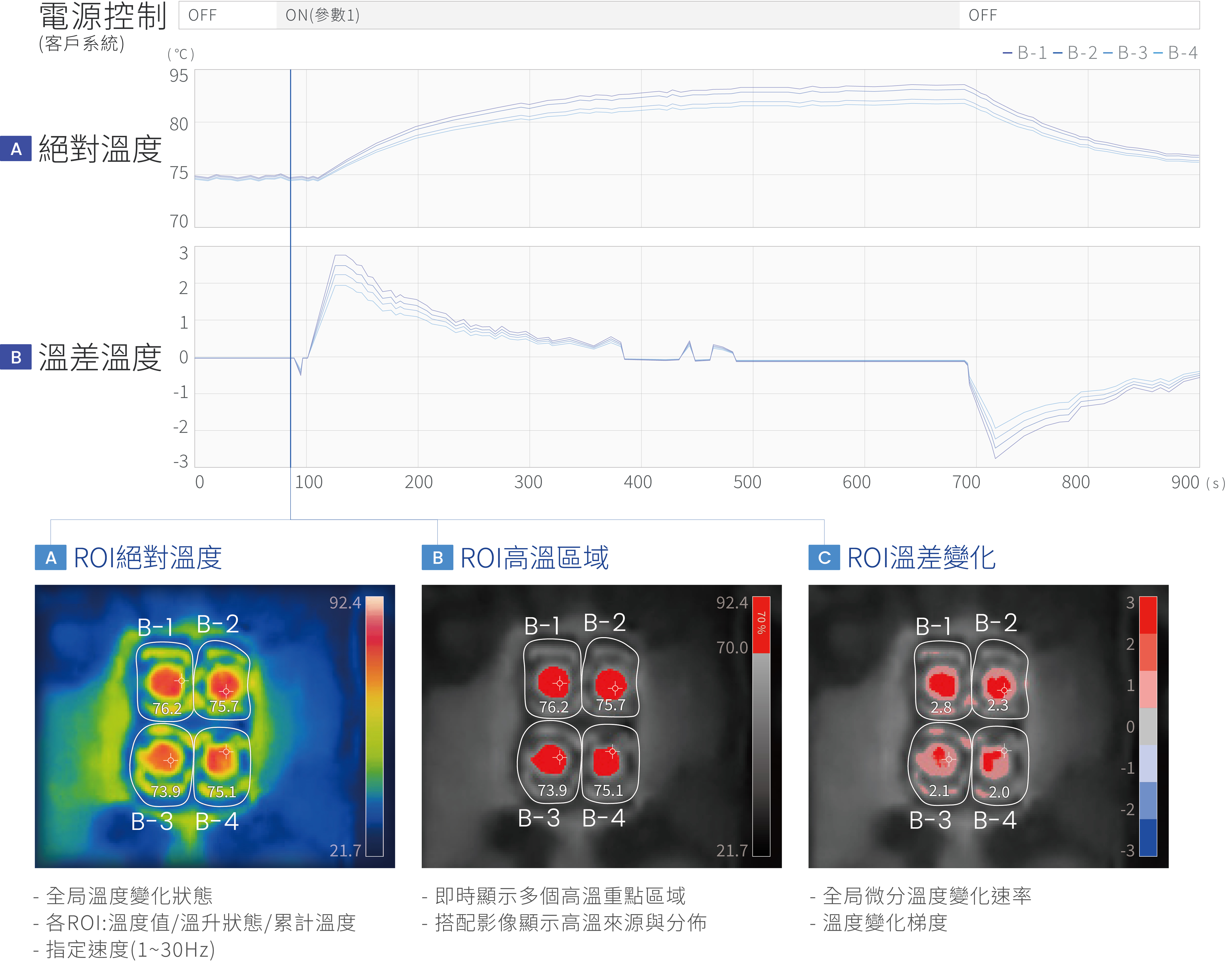 - 影像渲染 : 絕對溫度/溫差變化/高溫區域 (可指定刷新幀率)