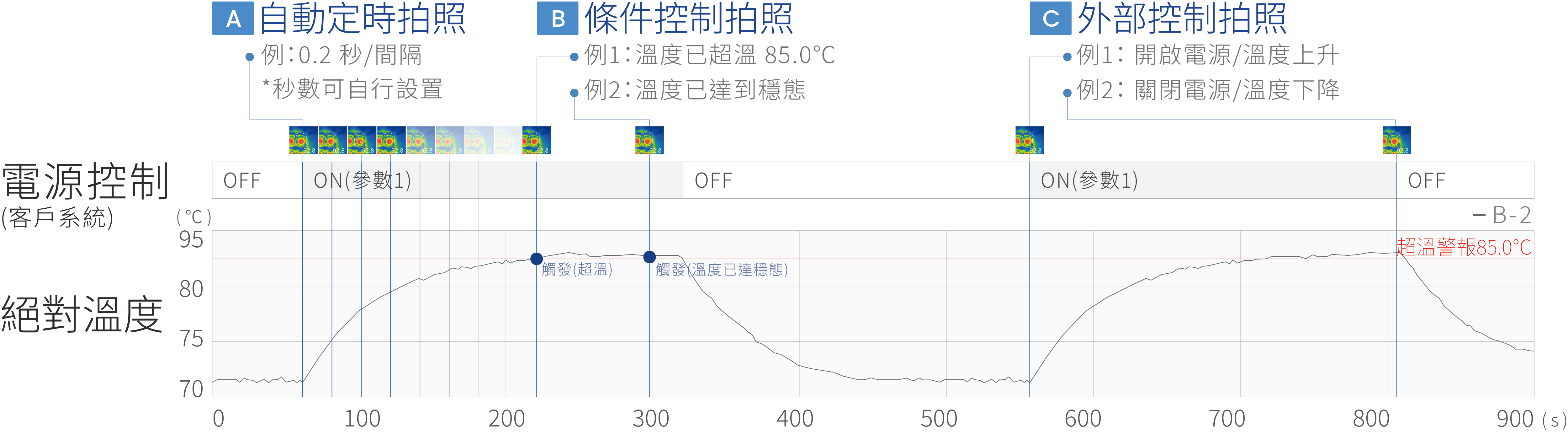 - 支援可分析拍照功能(皆可用於事後重新計算溫度)