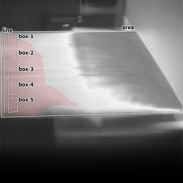 自動檢測待測物邊界ROI 智慧影像辨識材質破損、雜質 多面相均勻度品管監測 HMI介面圖像化操作 自動識別生產類別 大數據品管標準分析 彈性設定品管標準差 查看品質未達標的位置與長度 輸出良率分析報告 應用|連續性材料溫度監測 PET 保鮮膜 應用|連續性材料溫度監測 玻璃 應用|連續性材料溫度監測 鋼捲