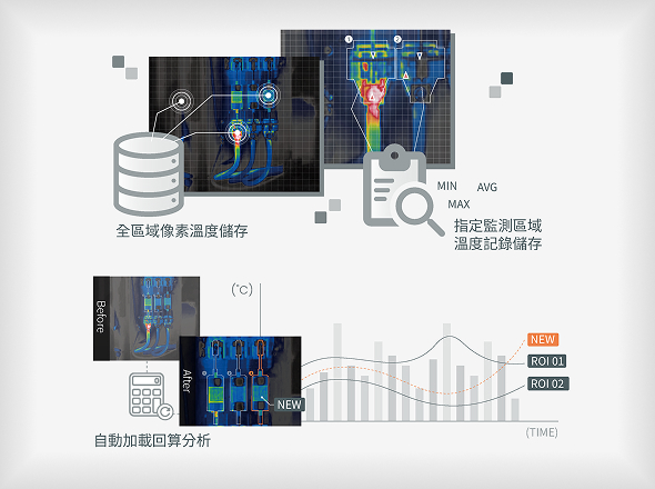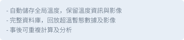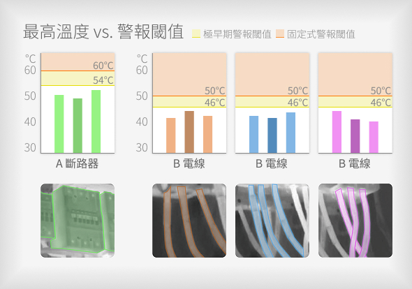 實現高效能的自動溫度監測,根據設備的絕對溫度與溫升速度進行雙重篩查,精確辨識可能的過熱風險。透過對溫度變化的即時監控,系統能夠在設備表面溫度達到預設臨界值,或溫度上升速度異常時,即時發出警報,確保不會錯過任何潛在的火災風險。